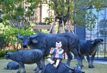 傳統民俗雕塑:記錄老農生活的水牛玻璃鋼來自中國內蒙古西部沙漠地區的一種傳統民俗雕塑。它以玻璃鋼材料制成,表現出高科技的精致,同時又反映出傳統文化的多樣性,把老農們的生活形象完美地呈現出來。
