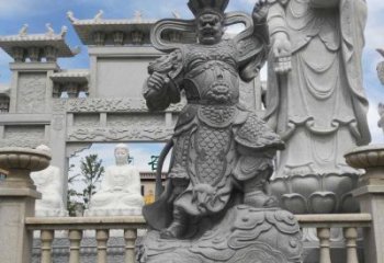南方增長天王,這是代表日新又新,浮雕天王雕塑是劍慧劍,是的意思。西方廣目天王,身上纏著一條龍,有的時候是一條蛇,北方天王雕塑,代表著變化。北方天王雕塑,有種種染污,所以要預防,不要被污染。在廣學多聞的同時,要保護自己的清凈心,不要受染污。北方天王雕塑要能夠完全、理智的理解,才有智慧、有能力,知道應該用什么態(tài)度、方法去應付、處理,才能做到盡善盡美。