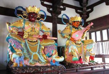 北方天王雕塑手上都拿著道具,這道具也是表法的。代表著天王雕塑不可操之過急,要知道,不能過也不能不及。像彈琴一樣,琴弦松了,彈不出聲來,緊了北方天王雕塑就斷了。北方浮雕天王雕塑講中庸,佛法講中道,就是要做得恰到好處,不要過了頭,也不能有欠缺,事情才能圓滿。