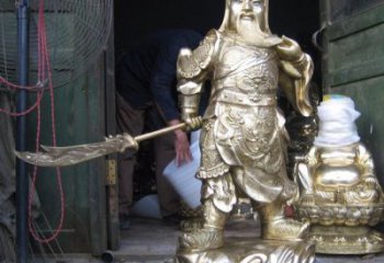 手工鑄銅噴金雕刻武財神關公雕塑