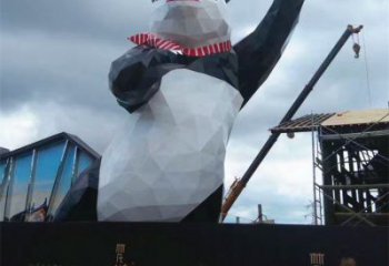 這是一座卡通風(fēng)格的景觀雕塑,主體為戴熊貓帽的少女形象。她身著黑白配色服飾,手持粉色杯子,造型可愛俏皮,為空間增添活力。