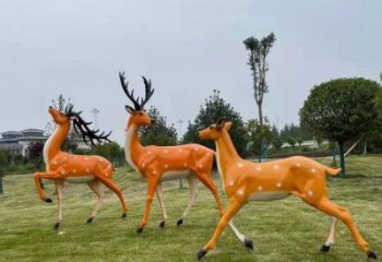 玻璃鋼梅花鹿彩繪童趣雕塑,為戶外園林增添童趣